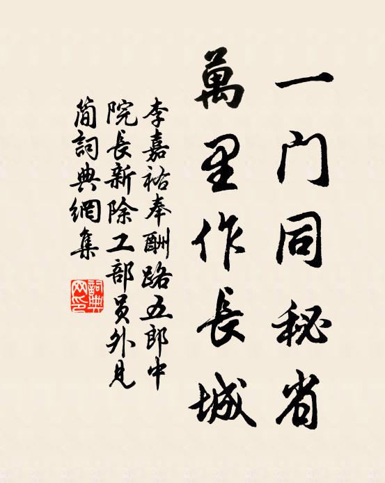 一门同秘省,万里作长城